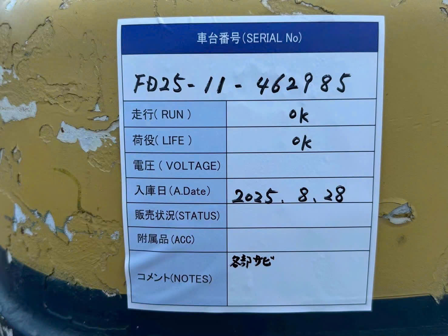 | Chiều cao nâng | Loại xe | Chức năng phụ | Năm sản xuất | Giờ hoạt động |